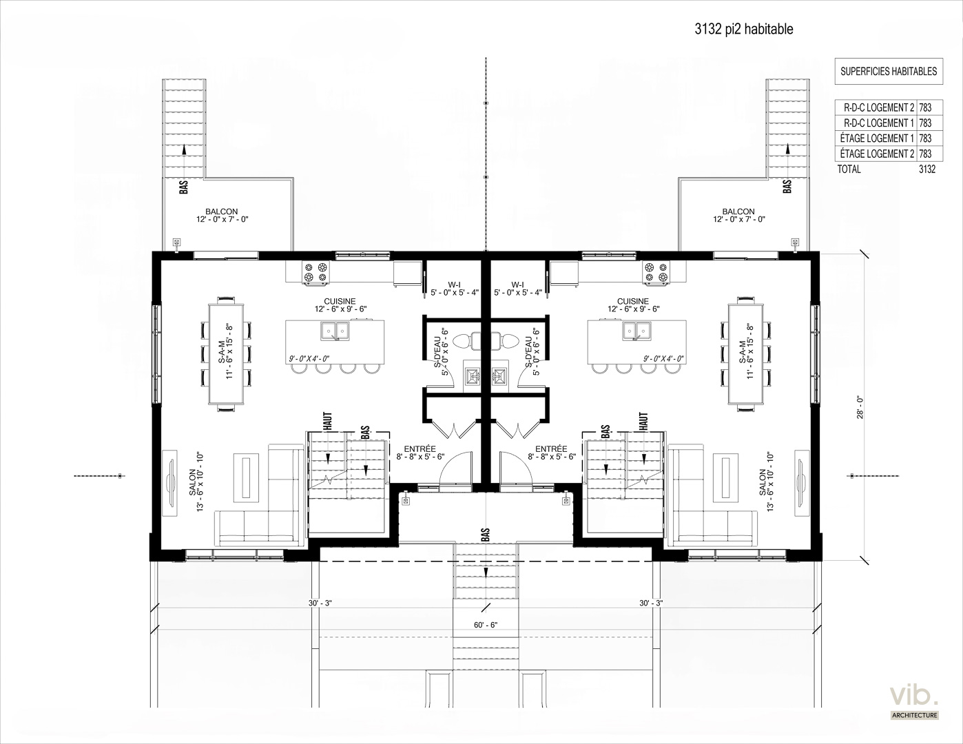 Étage : 2x 783 pi2